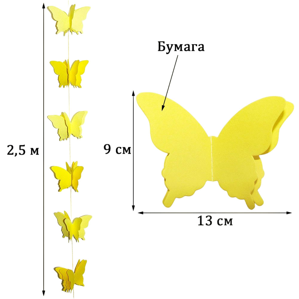 Расправьте крылья и создайте праздничное настроение. Гирлянда идеально подходит для украшения детских комнат, свадеб, окон, стен и фотозон. Объемные бабочки на нитке добавят нежности и легкости интерьеру.