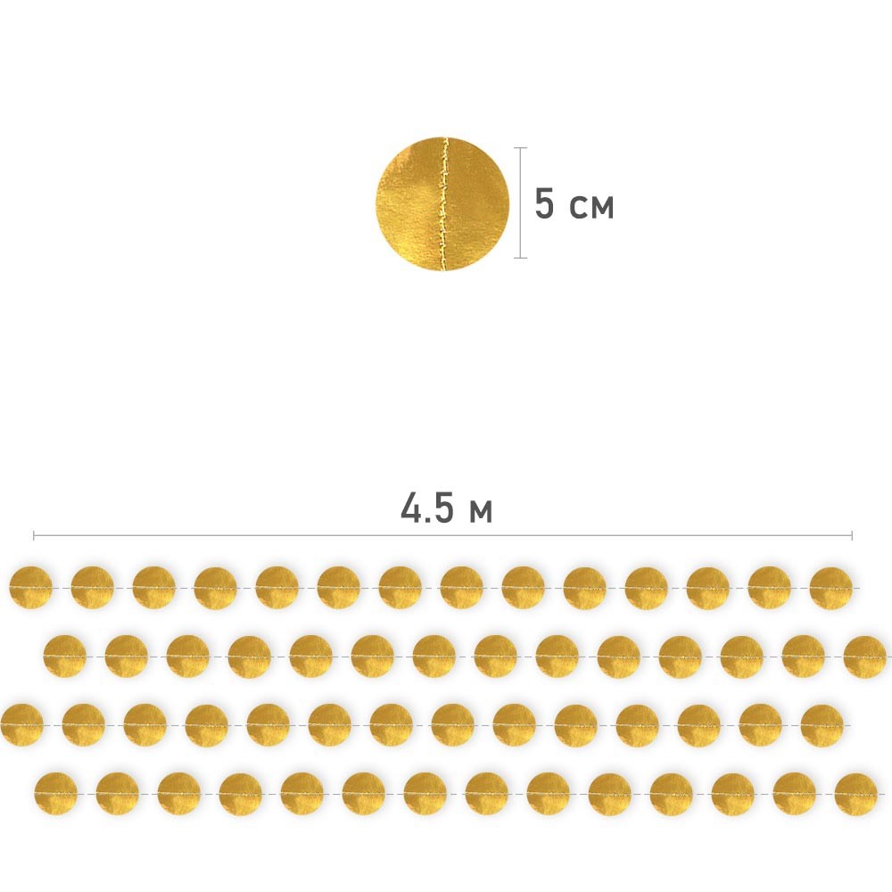 Гирлянда "Кружочки" металлик 5 см х 4,5 м, Золото