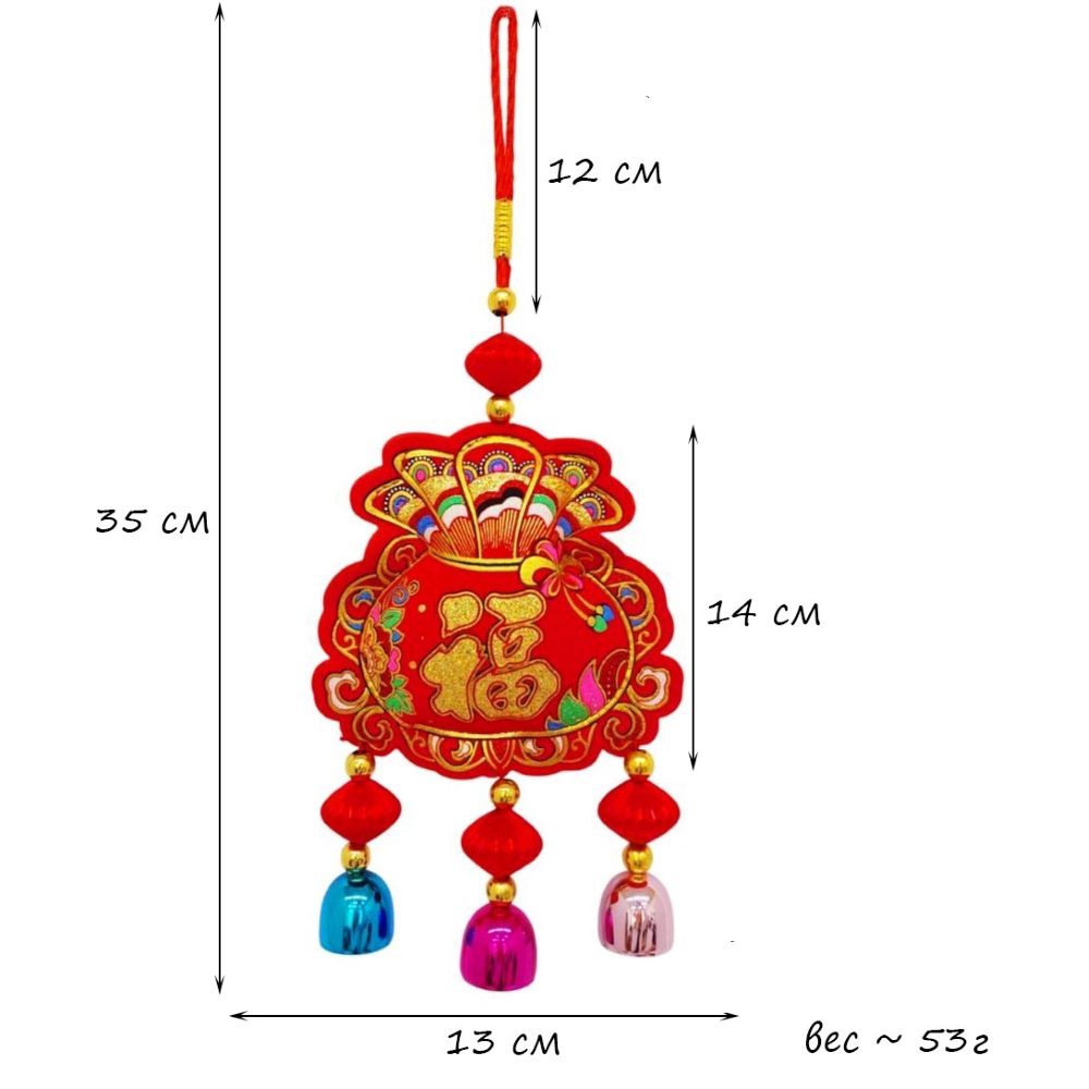 Китайская подвеска с колокольчиками 13х35см, Денежный мешок - 1 шт