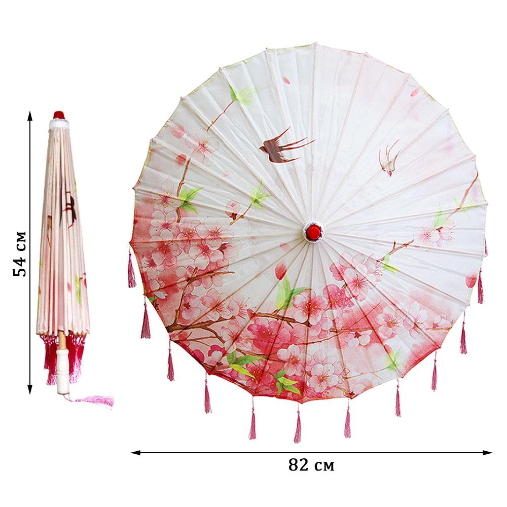 Китайские тканевые зонтики цветочные с кисточками 82х54 см