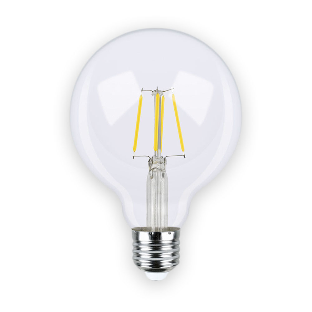 Лампа светодиодная G95 E27 W4 винтажная лампа с теплым светом 2700K. Мощность 4 Вт, что заменяет по способности освещать – традиционные лампы 20Вт. Винтажная лампа предназначена для установки в декорации и гирлянды, освещения баров и ресторанов. Длительный срок службы – до 25 тысяч часов. Угол освещения: 360 °. Может устанавливаться как внутри, так и снаружи помещений.