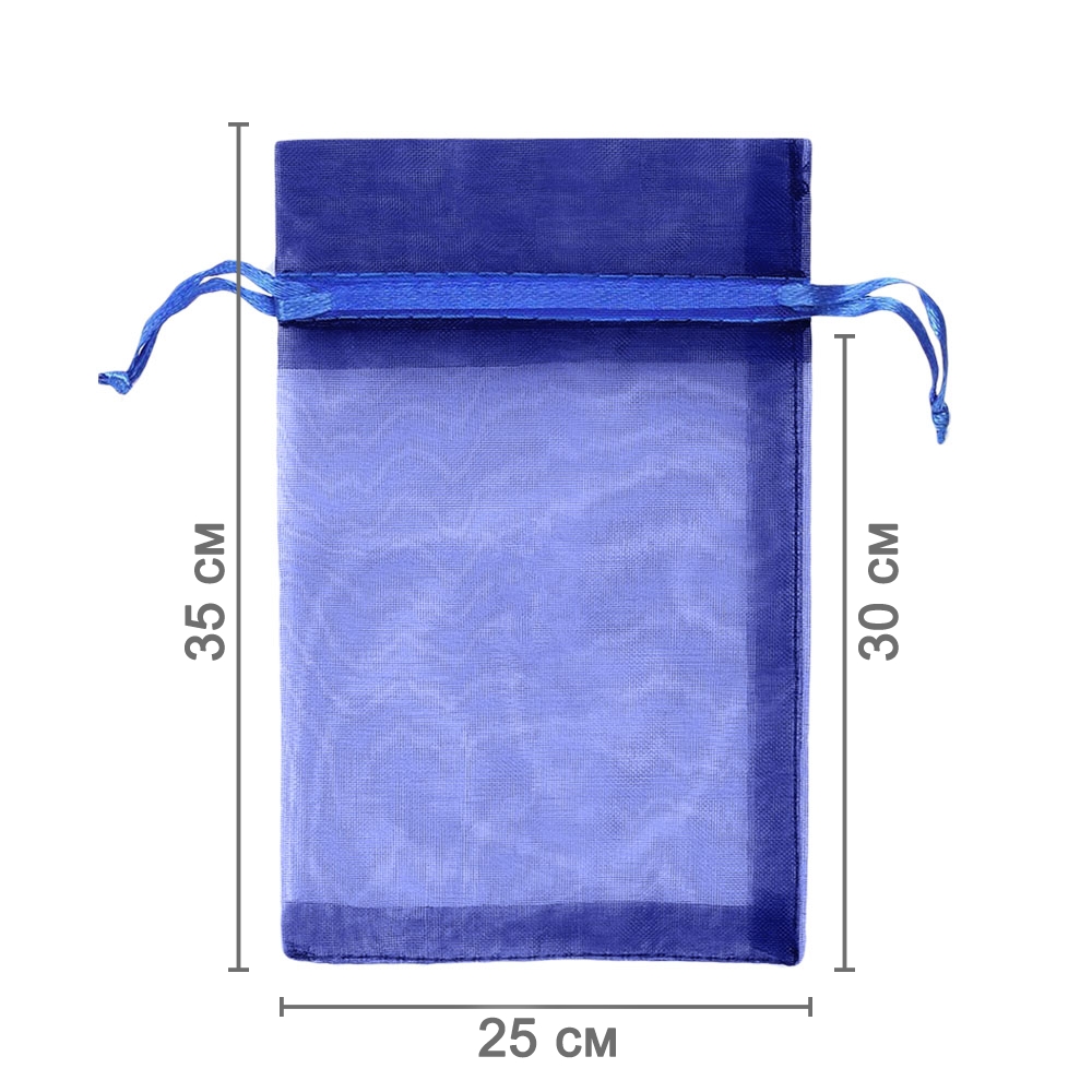 Мешочек из органзы 25 х 35 см — практичный аксессуар для упаковки крупных предметов и подарков. Лёгкая ткань подчёркивает содержимое и придаёт праздничный вид.