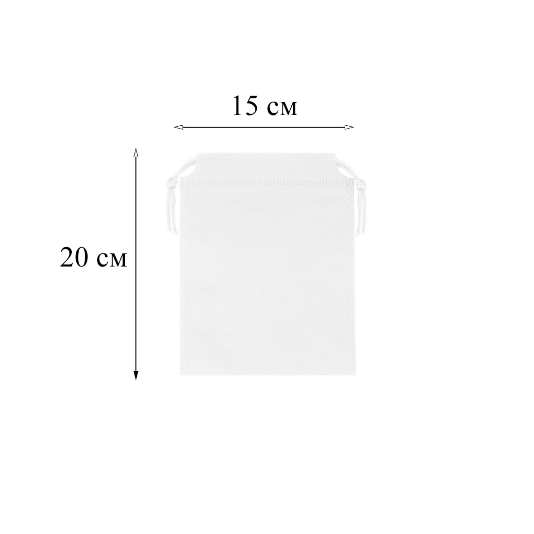 Мешочек из спанбонда, размеры 20х15см, со шнурками, подходит для многоразового использования. Плотность материала: 55 г/м².