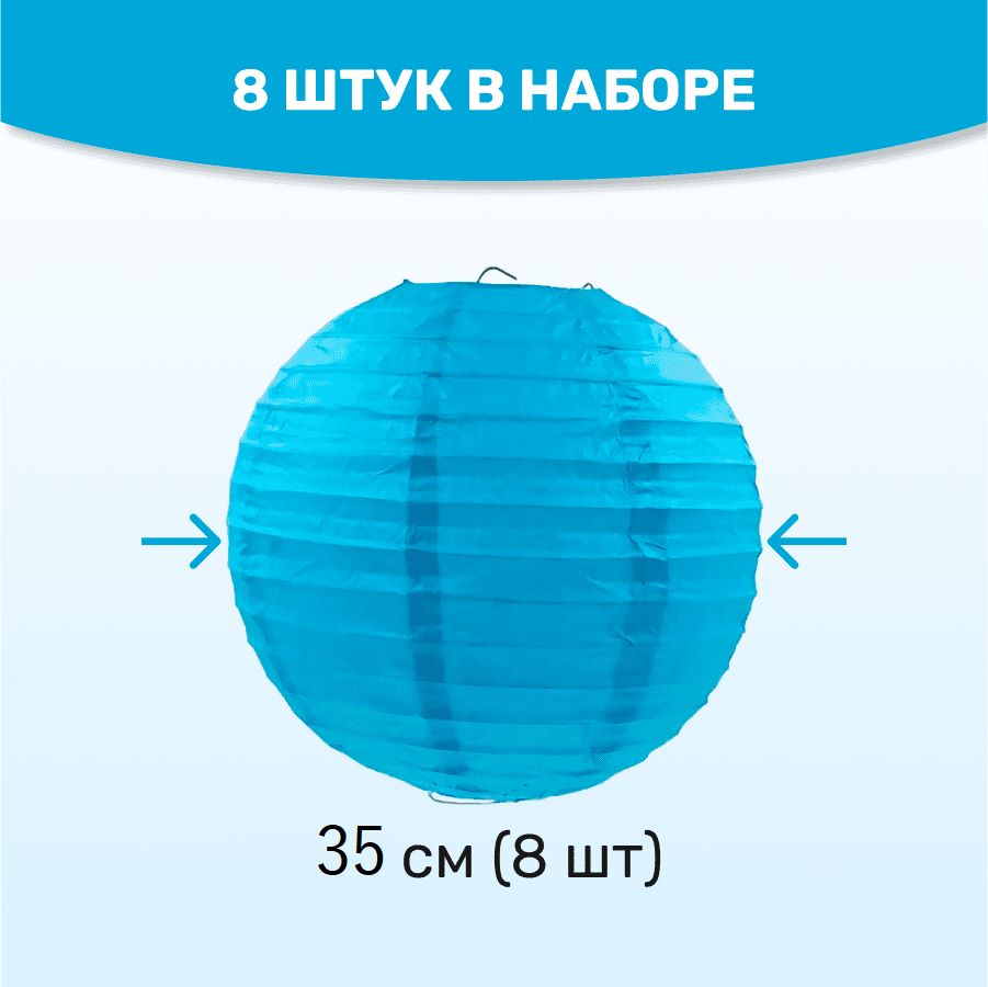 В комплект входит 8 бумажных фонариков и лента атласная.