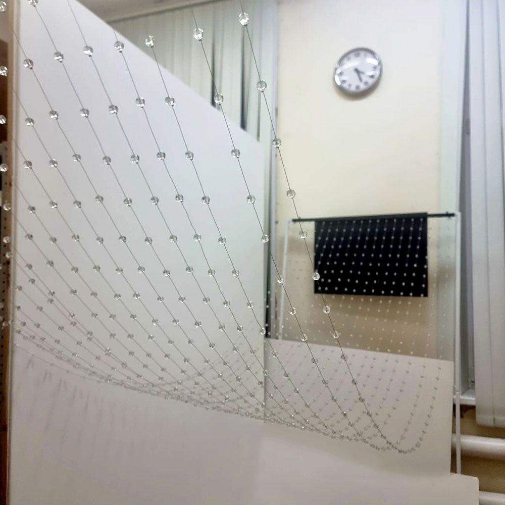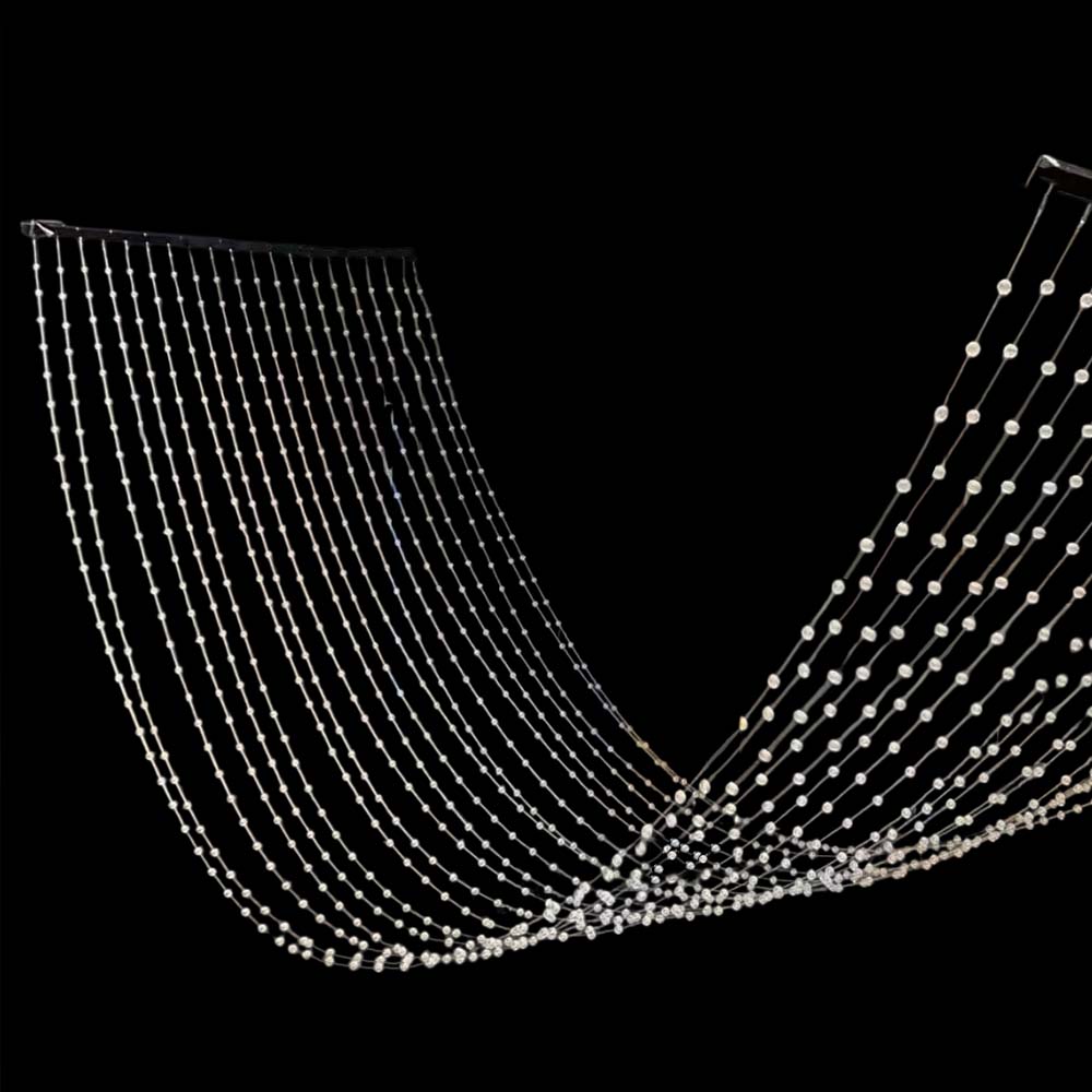Подвеска создает плотную мерцающую завесу для зонирования пространства, оформления свадеб, фотостудий и жилых интерьеров. Игра света и граней делает подвеску невероятно динамичной и живой.