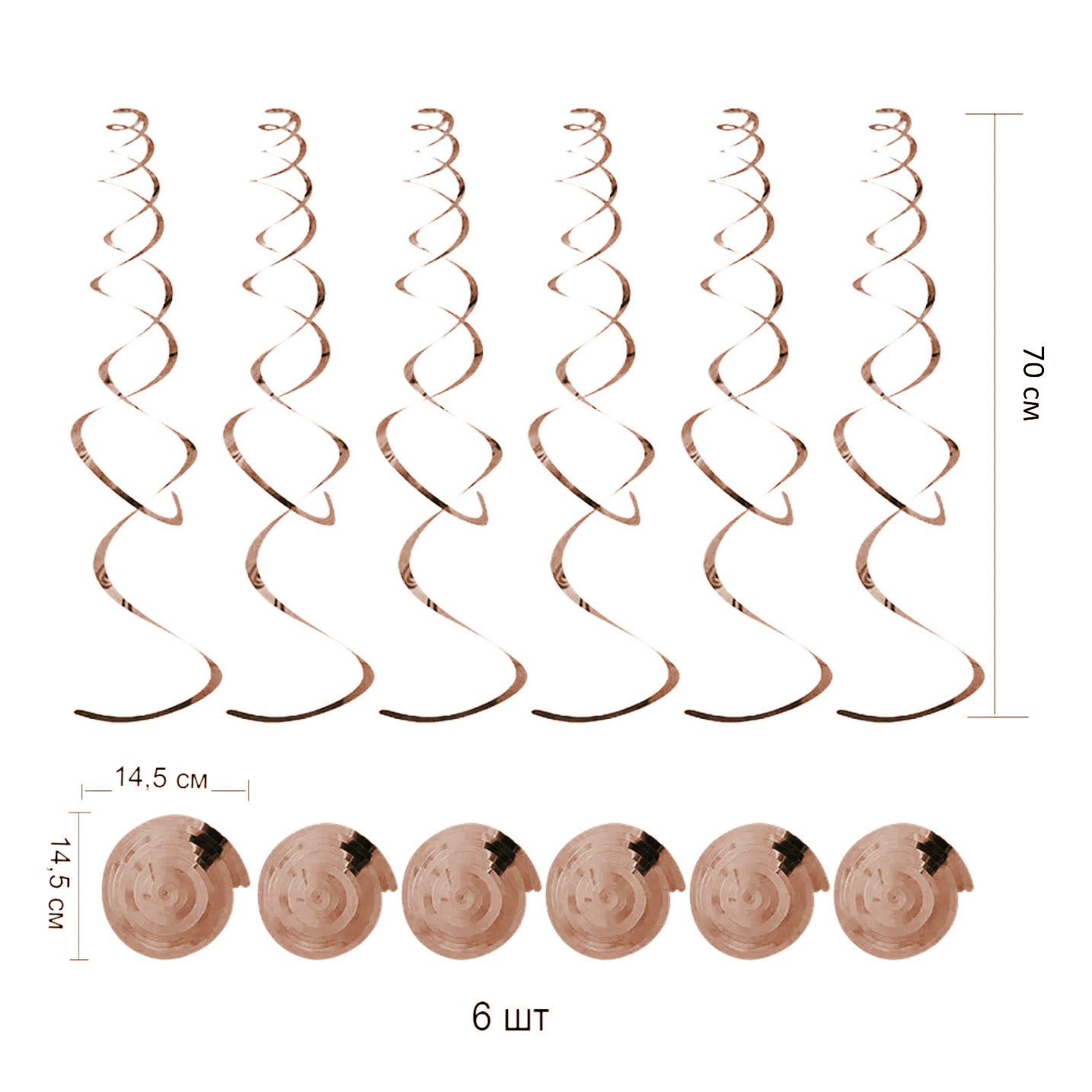 Спираль пластиковая 70см 6шт, розовое золото