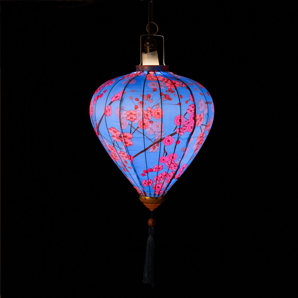Это традиционные подвесные фонарики ручной работы, изготовленные из шелкового материала с элегантным цветочным узором, которые делают его изысканным и красивым.