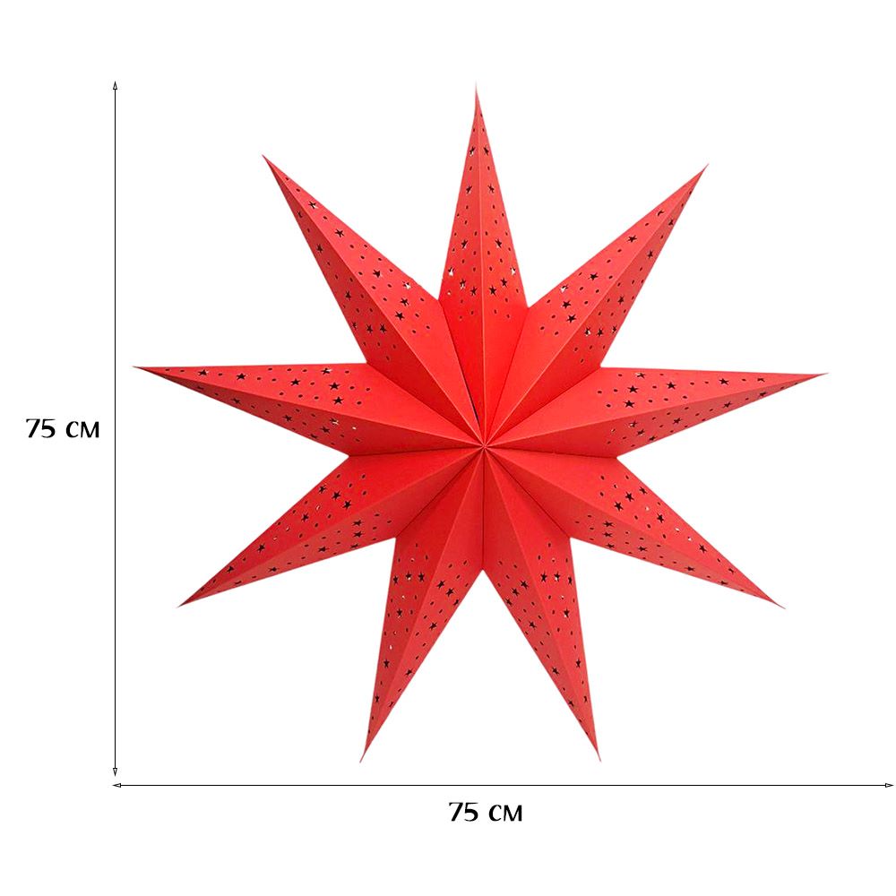 Звезда девятиконечная 75 см, точки и звездочки, красный